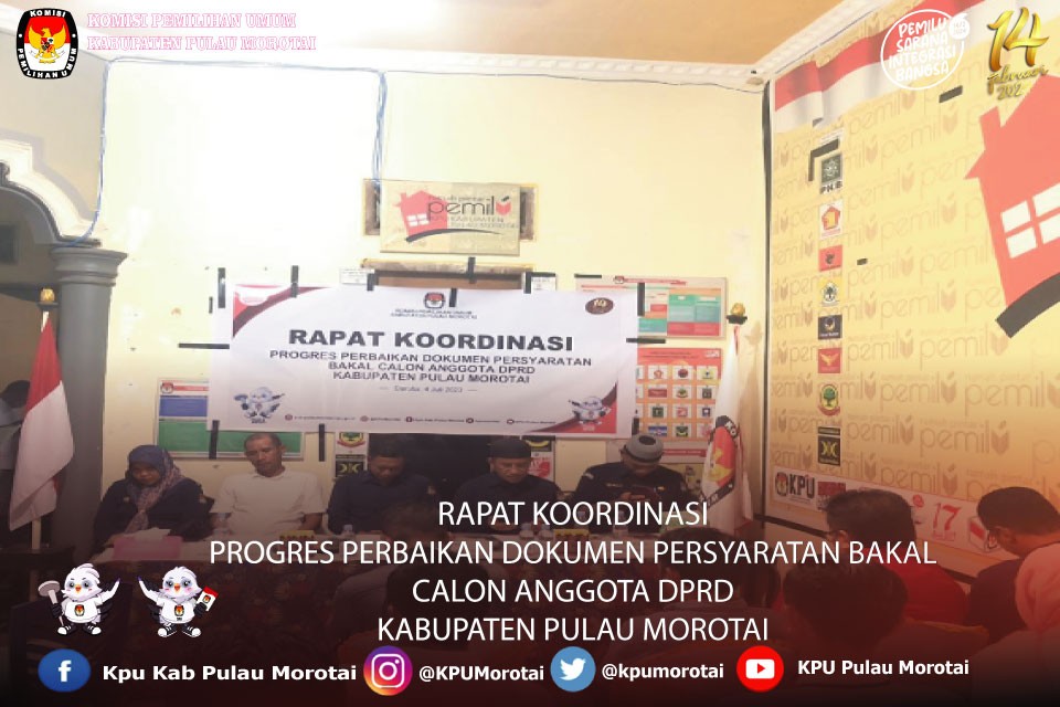 Rapat dipimpin oleh Ketua KPU Kab. Pulau Morotai Irwan Abbas dan didampinggi Anggota KPU Kab. Pulau Morotai Faisal Aba, Arfandi Iskandar Alam, Amina Failisa dan Iswan Muhammad