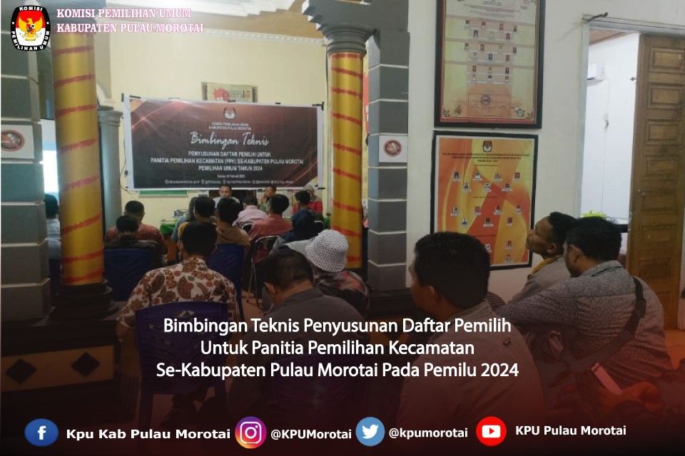 Pulau Morotai - Anggota KPU Betty Epsilon Idroos menghadiri Rapat Pleno Terbuka Rekapitulasi Penetapan Daftar Pemilih Sementara (DPS) Pemilu Tahun 2024 oleh KPU Kabupaten Pulau Morotai, Rabu (5/4/2023) Betty menyampaikan, kegiatan pleno bertujuan untuk menetapkan DPS tingkat Kabupaten Pulau Morotai. Setelah menjalani tahapan yang panjang sejak penerimaan data DP4 dan selanjutnya coklit oleh Pantarlih dan rekap berjenjang dari kelurahan dan kecamatan, data pemilih disusun dan dicermati menjadi DPS. Betty meminta agar KPU kabupaten dan pemangku kepentingan untuk turut menyosialisasikan cekdptonline.kpu.go.id sebagai alat bantu mengecek pemilih sudah terdaftar dalam Data Pemilih Pemilu 2024. Selain itu, sosialisasi juga dilakukan dengan cara menempel DPS pada papan pengumuman di kantor-kantor kelurahan atau kantor kepala desa. Apabila ada masukan atau tanggapan, petugas KPU akan memperbaiki data sepanjang data-data pendukungnya memenuhi syarat. DPS akan terus menerus diteliti hingga masa Daftar Pemilih Tetap (DPT) ditetapkan. Betty juga mengucapkan terima kasih atas kerja dari PPK, PPS, dan Pantarlih se-Pulau Morotai, yang telah berupaya memutakhirkan data pemilih. Turut hadir Ketua dan Anggota KPU Provinsi Maluku Utara, Bawaslu Kab. Pulau Morotai, Forkopimda Kab. Pulau Morotai, perwakilan 18 Partai Politik Peserta Pemilu 2024, dan PPK dari 6 Kecamatan se-Pulau Morotai.