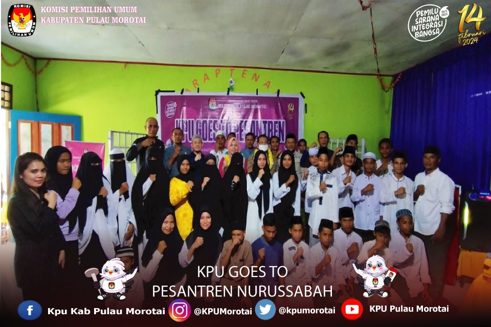 Pulau Morotai - Dalam rangka memperingati Hari Santri, KPU Kab. Pulau Morotai mnegadakan kegiatan KPU Goes To Pesantren sekaligus nonton bersama (Nobar) film "Kejarlah Janji" di Pondok Pesantren Nurussabah, pada hari Minggu, 22 Oktober 2023 Pukul 14.00 WIT.