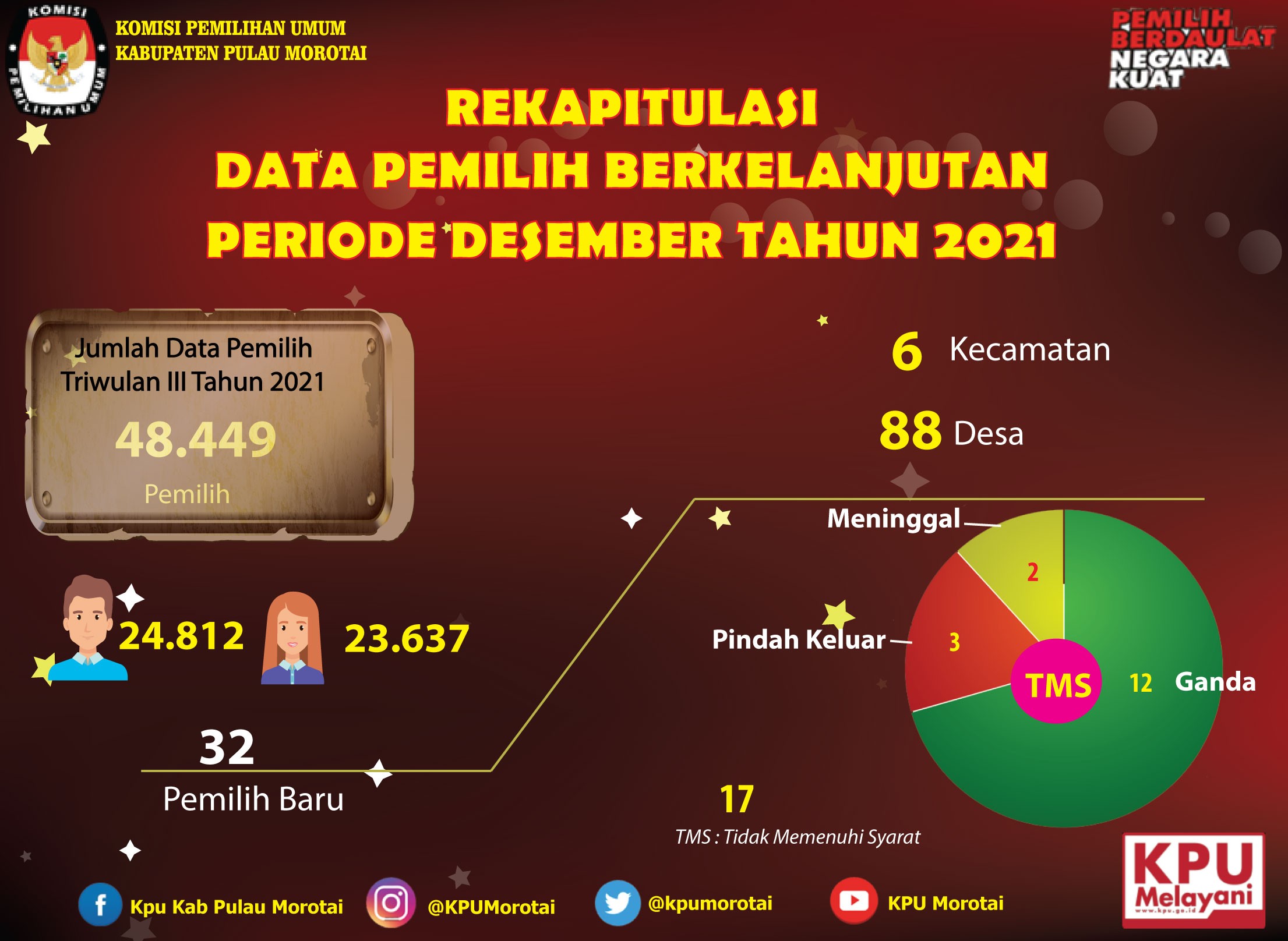 Pulau Morotai - Kamis, ( 30/12 ), KPU Kabupaten Pulau Morotai Melaksanakan Rapat Pleno Internal Rekapitulasi Data Pemilih Berkelanjutan Periode Desember Tahun 2021. Berikut ini rincian data hasil rekapitulasi.